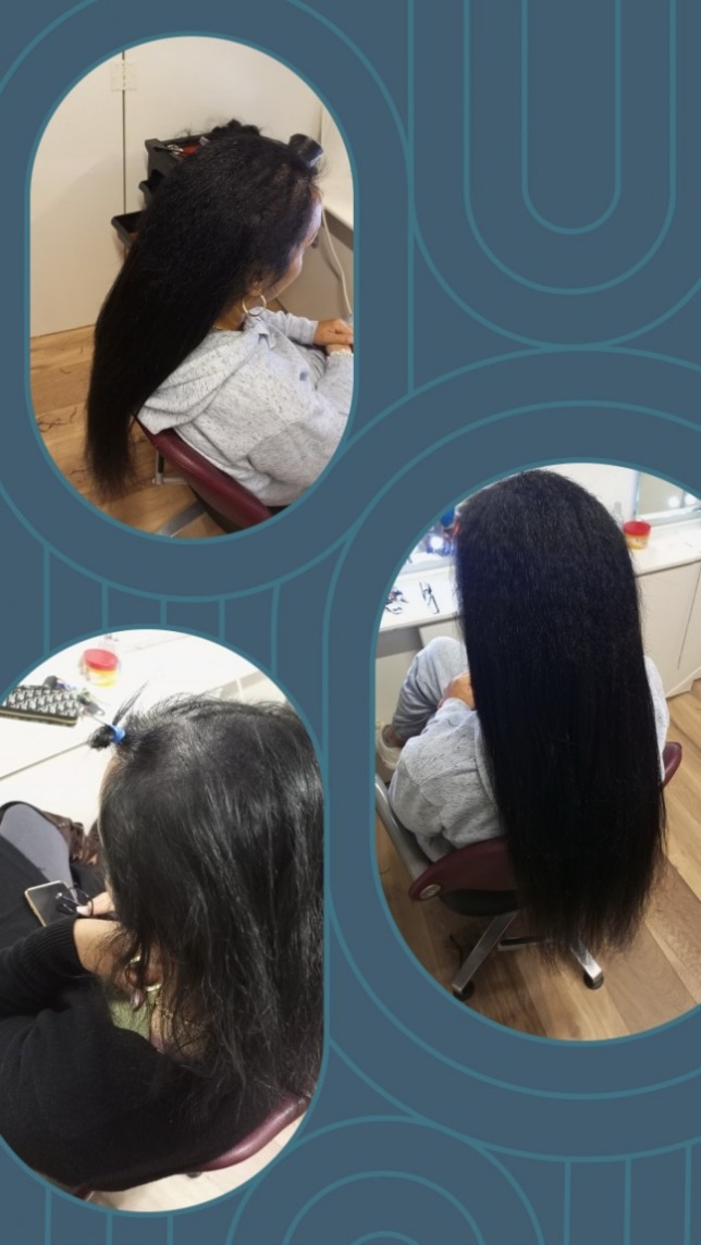 Für Coiffure Afro verwende ich drei verschiedene Arten von Haarsträhnen, die ich in das Naturhaar einwebe:
